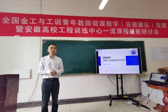 6月19日,全国金工与工训青年教师微课教学(安徽赛区)竞赛在安徽工业大学举行,365上市公司官网教师方涛代表我校参赛,365上市公司官网院长施云贵带队并进行指导,经过激烈角逐,方涛荣获特等奖。